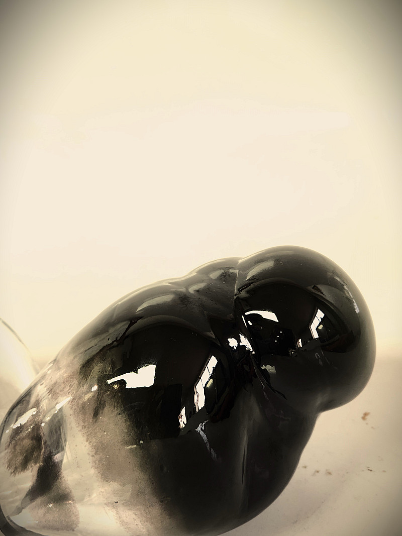 self-reflection, revealing a black shadow form that speaks to the core of humankind.