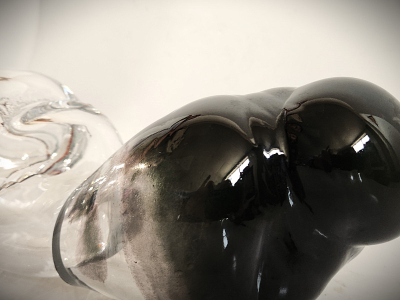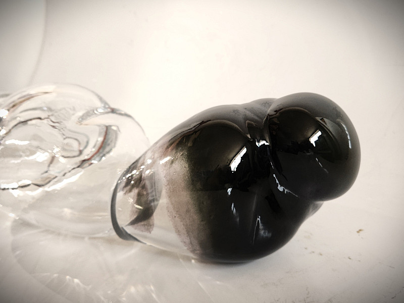 Glass, a recurring element in my work, embodies fragility and memory. Though