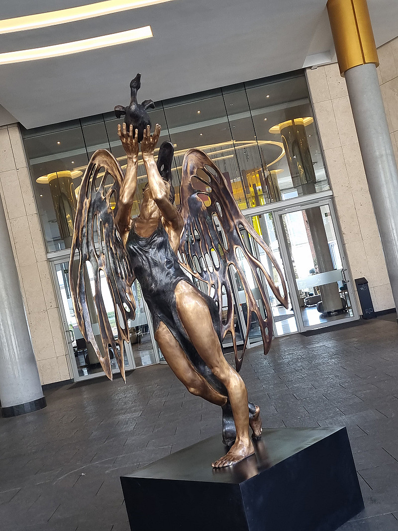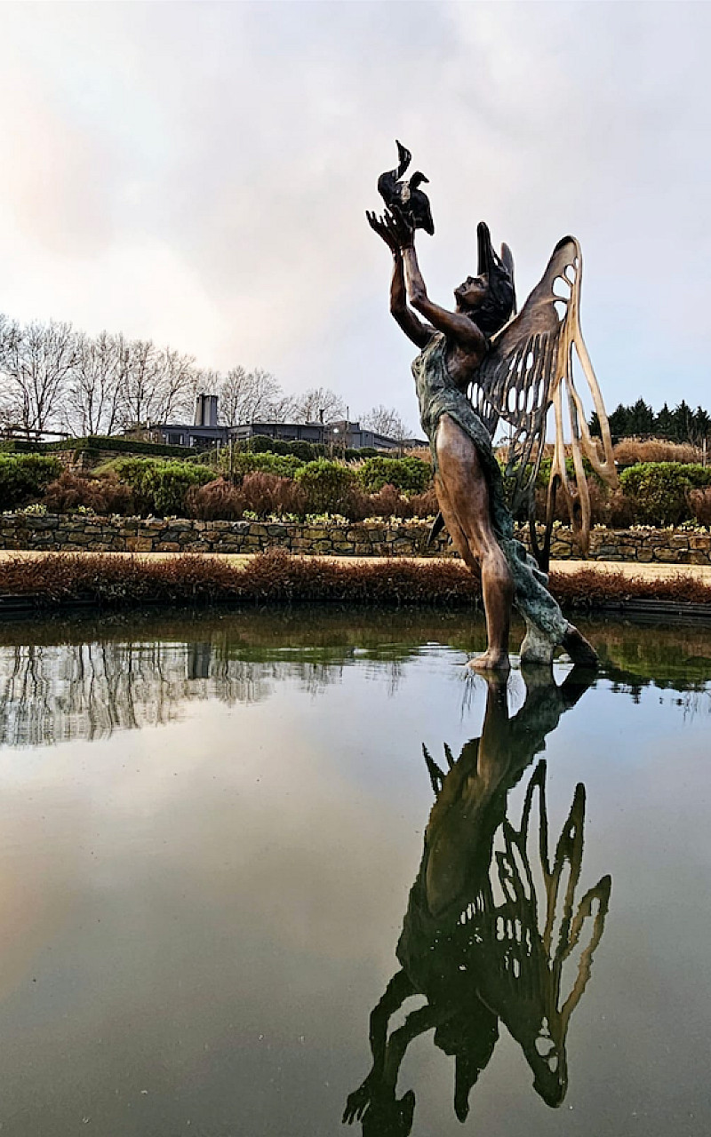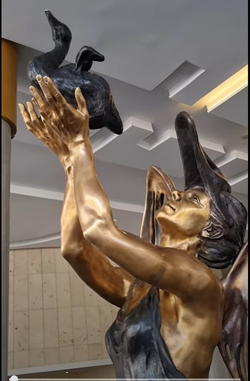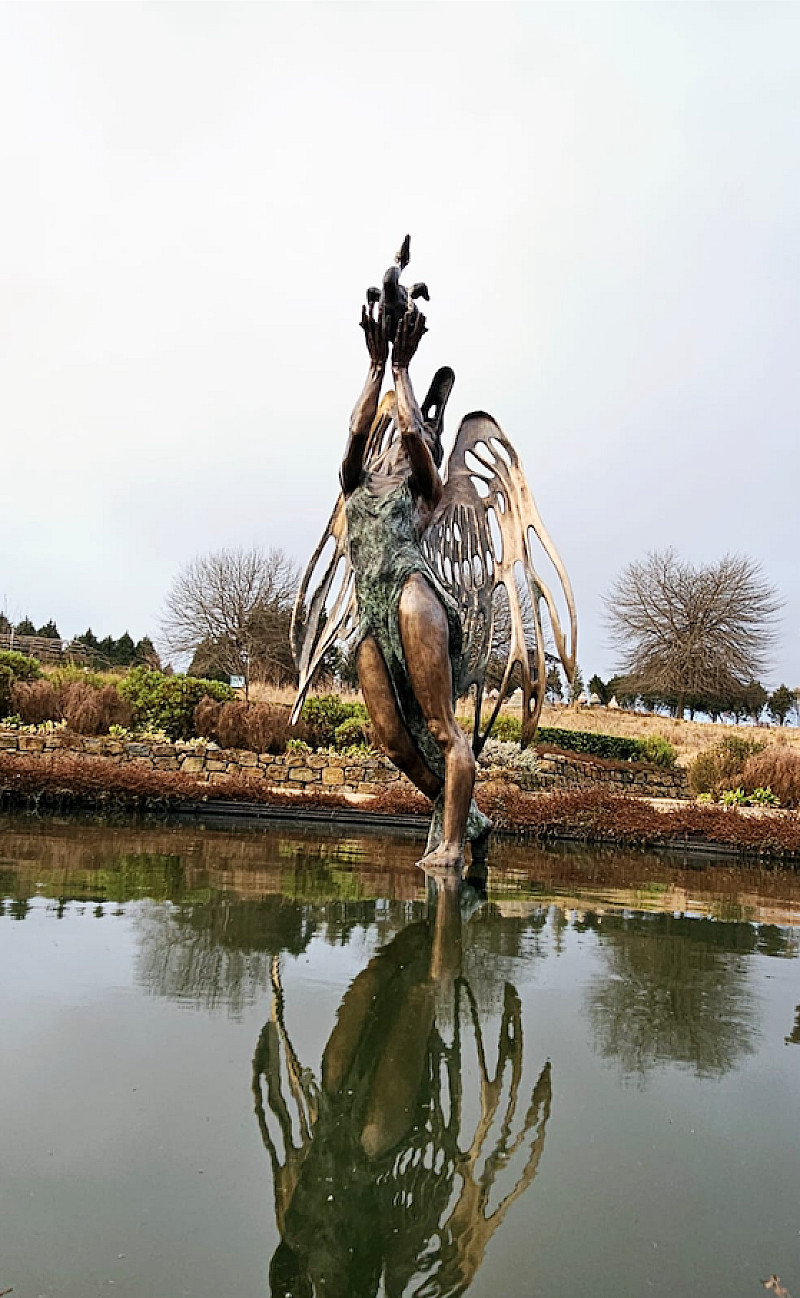 Although the chick is not quite ready for flight, Leda introduces him to the awaiting horizons. The sculpture is a testament to the excitement and the anticipation of into the unknown - the excitement is palpable.