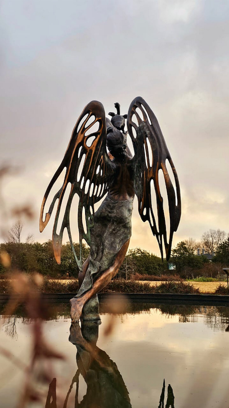The sculpture, Leda and the Signet, will become an iconic love, devotion and the celebration of our differences in form and identity. Leda is portrayed as the eternal mother launching her offspring. She overcomes the cultural and natural differences between her and the signet by adopting the necessary characteristics and physical attributes to accommodate the needs of her young one. These adaptions encourage the signet to accept her guidance.
