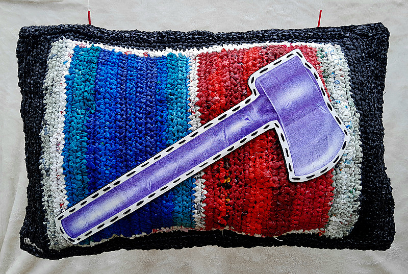 • Ballpoint, found object, wool