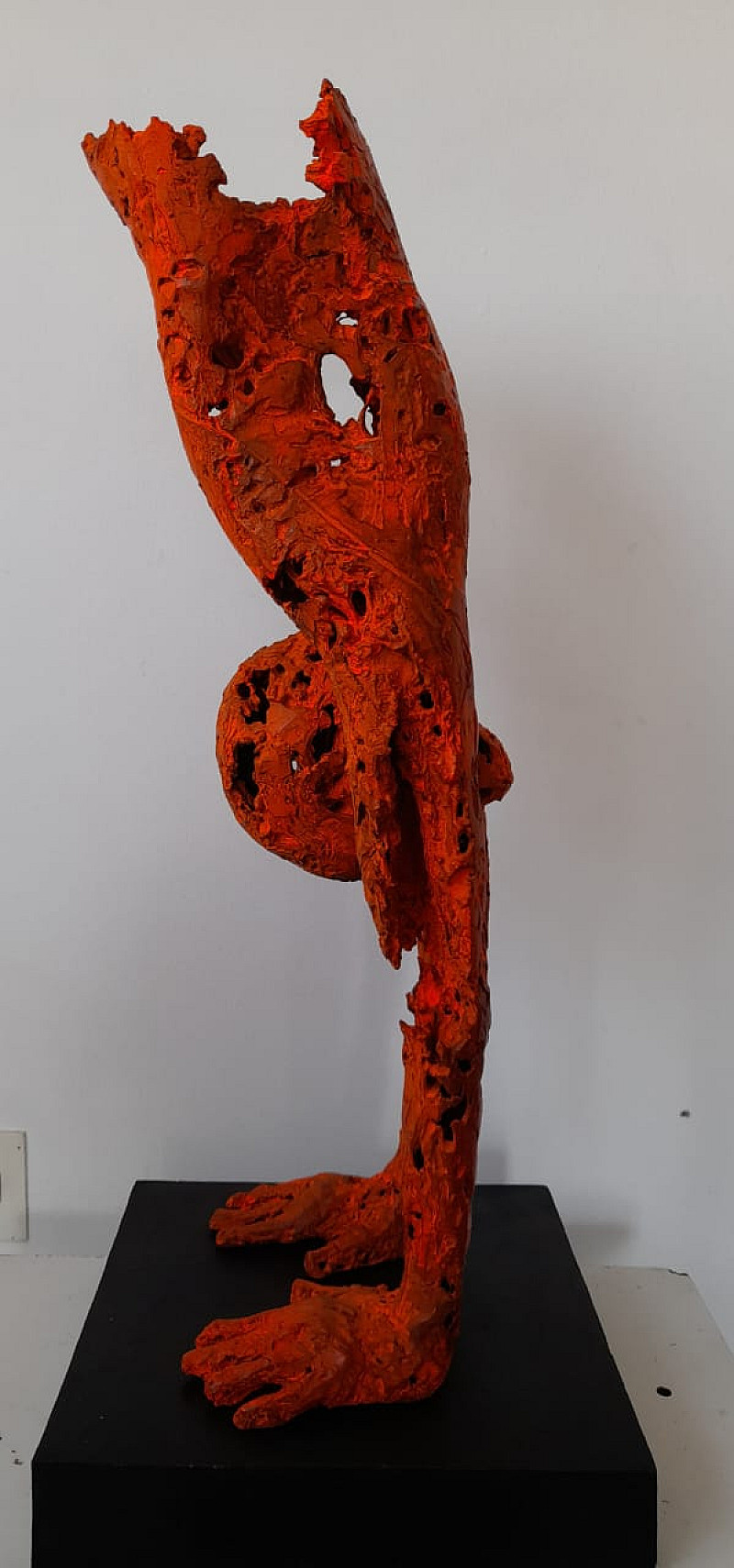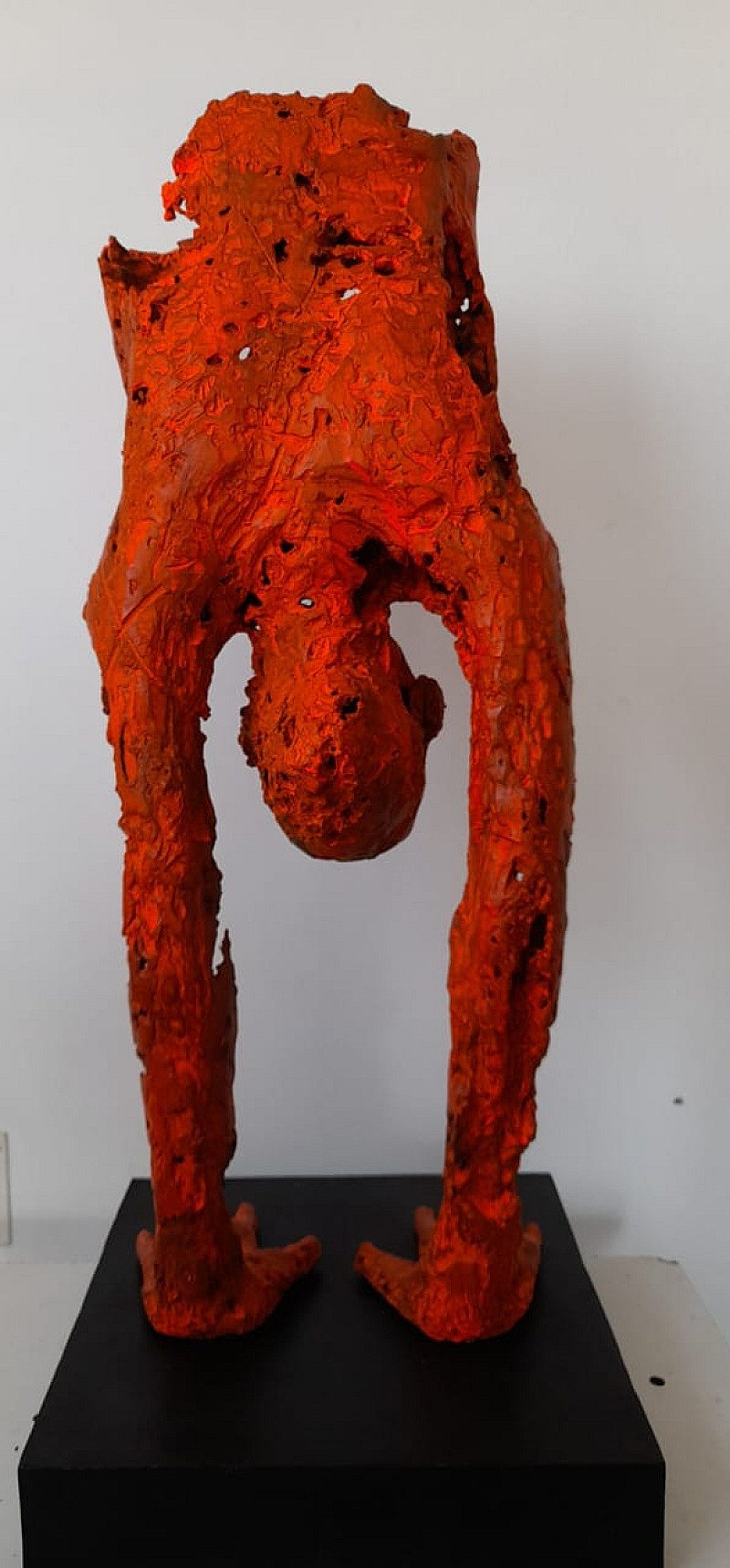 I am a sculptor working with traditionally modelling clay, mould making, and my signature material is PVC recycled plastic. I do live size sculptures of human figures and wild animals, depicting their movement and other objects such as musical instruments.