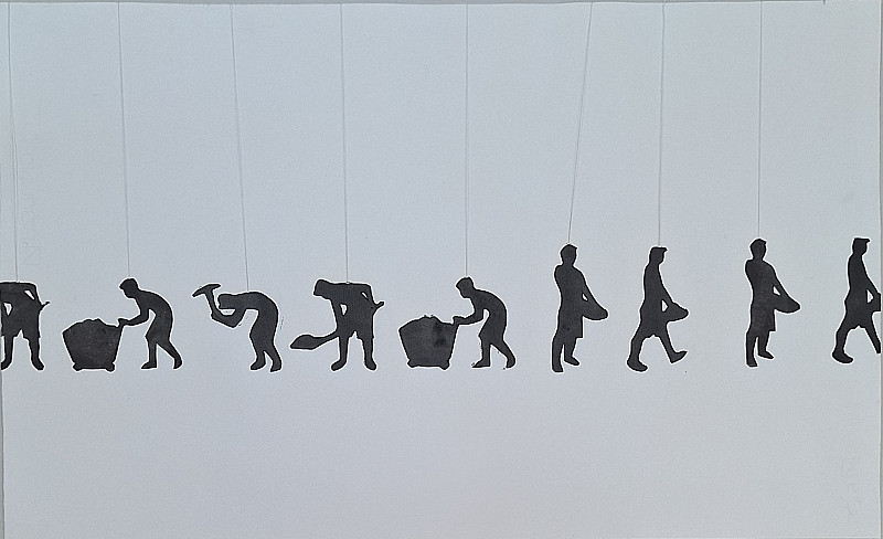, Alex Dibakwane , Mixed media linocut print on Fabriano