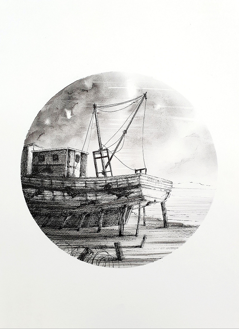 The Abandoned Series portrays the result of human neglect while also highlighting the beauty that can emerge from objects in the process of decay. The Peephole Series invites the viewer to draw closer and explore the fine details within the linework of the depicted scenes. This act of moving closer to inspect the intricate details mirrors the function of a peephole, where a world exists beyond the circular frame. The Venice Series is a collection of pen drawings depicting scenes from the city of Venice, where lines create tonal and dimensional depth, offering the viewer a glimpse of the mysterious, floating city.