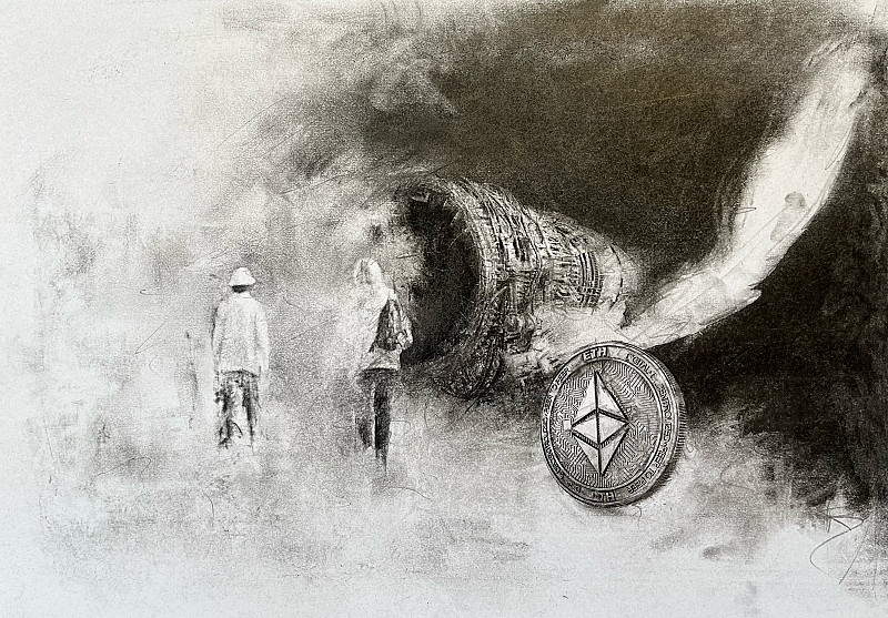 This series resembles or symbolises the dawn of a new era. It reflects a sense of transformation and hope. It depicts mechanical doves or space ships in flight with the humans traveling from planet Earth into a new space or virtual world of digital currencies and sustainable wealth.