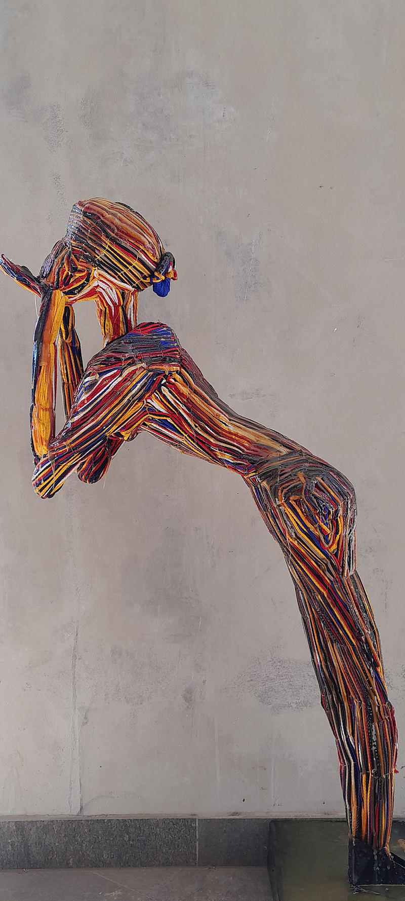 My work is large-scaled, site- specific installation that navigates the boundaries between physical and metaphorical stands. Using a combination of industrial materials and natural elements, I have crafted a series of interconnected pillars that rise from the ground, symbolizing the unshakeable foundation of those who refuse to yield.