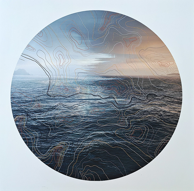 Taking inspiration from the plea for visibility found in the lyrics of Death Cab for Cutie, I have created a "seascape map" of the impressions left behind. The foundation is a circular AI-generated seascape, a "tondo" representing a global isolation. Over this digital void, I have hand-embroidered intricate contour lines—the physical marks of a connection that refuses to fade. Each stitch acts as a "trace" of a remembered touch, a literal threading of one heart into the space of another across the Atlantic.